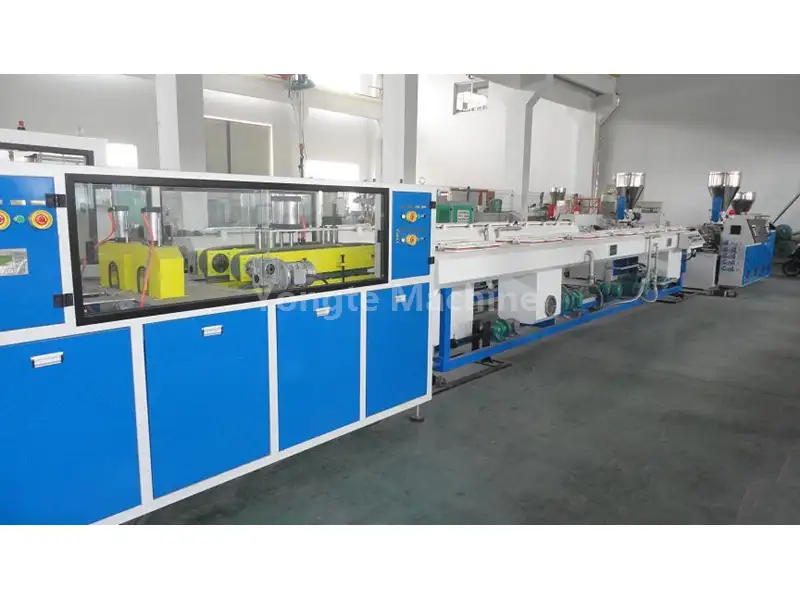 Mesin Pembuat Paip PVC Rongga Berganda Yongte berkualiti tinggi 16-50mm adalah sistem pengeluaran berprestasi tinggi yang direka untuk menghasilkan dua paip PVC secara serentak dengan kapasiti pengeluaran yang cemerlang. Ia menampilkan kelebihan teras seperti automasi tinggi, kecekapan tinggi, kualiti unggul, reka bentuk mekanikal ergonomik, penjimatan tenaga dan kemudahan operasi.
