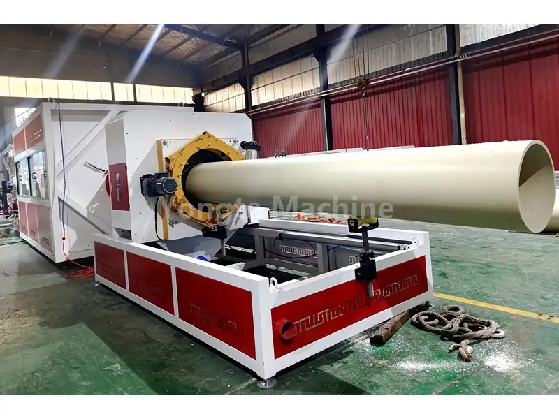 Yongte pakar dalam pembuatan barisan pengeluaran paip PVC 280-500mm, direka untuk mencipta paip tegar berdiameter besar yang digunakan dalam sektor pembinaan, pertanian dan perindustrian. Menampilkan penyemperit skru berkembar kon SJSZ92/188 dengan konfigurasi skru yang dipertingkatkan, sistem ini menjamin pengplastikan yang konsisten bagi bahan PVC (SG-5, UPVC, CPVC) dan peratusan tinggi bahan pengisi (CaCo3). Ia mengekalkan kadar keluaran yang stabil 400-500 kg sejam. Faedah utama barisan pengeluaran ini merangkumi automasi yang tinggi, peningkatan produktiviti, prestasi produk yang cemerlang, kejuruteraan mekanikal berorientasikan pengguna, pemuliharaan tenaga dan operasi yang mudah. Terutamanya, barisan pengeluaran paip PVC 280-500mm dilengkapi dengan motor servo dan sistem pemanasan penjimatan tenaga, mencapai kecekapan tenaga yang sangat baik pada kuasa operasi ~110kW (kuasa terpasang ~250kW)—pengurangan 15-20% berbanding mesin paip PVC standard berkapasiti serupa. Ini berpunca daripada reka bentuk skru yang dioptimumkan yang mengurangkan rintangan bahan dan sisa tenaga semasa pengplastikan, serta motor servo yang cekap dan penukar kelajuan yang melaraskan bekalan kuasa secara dinamik kepada permintaan pengeluaran.