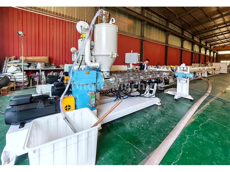 Yongte ialah pengeluar peralatan penyemperitan paip plastik terkemuka China, mengkhusus dalam R&D, pengeluaran dan penyesuaian Mesin Pembuat Paip PPR 75-125mm—talian penyemperitan berketepatan tinggi untuk paip PPR berdiameter sederhana. Paip ini sesuai untuk sistem air minuman, kumbahan rumah/komersial, dan saluran elektrik bawah tanah, jadi mesin ini digunakan secara meluas dalam bangunan kediaman, projek perbandaran dan sistem pengairan pertanian yang besar. Menggunakan teknologi penyemperitan skru tunggal termaju dengan reka bentuk skru yang dioptimumkan (zon pencampuran terbahagi dan kawalan suhu yang tepat), peralatan ini memastikan pengeluaran paip PPR yang mantap daripada diameter 75 hingga 125mm. Ia automatik sepenuhnya (daripada penyuapan bahan hingga pemotongan), menjimatkan 15% lebih tenaga daripada model biasa, dan membuat paip berkualiti tinggi (dengan ketepatan saiz ±0.1mm dan rintangan tekanan 16 bar).